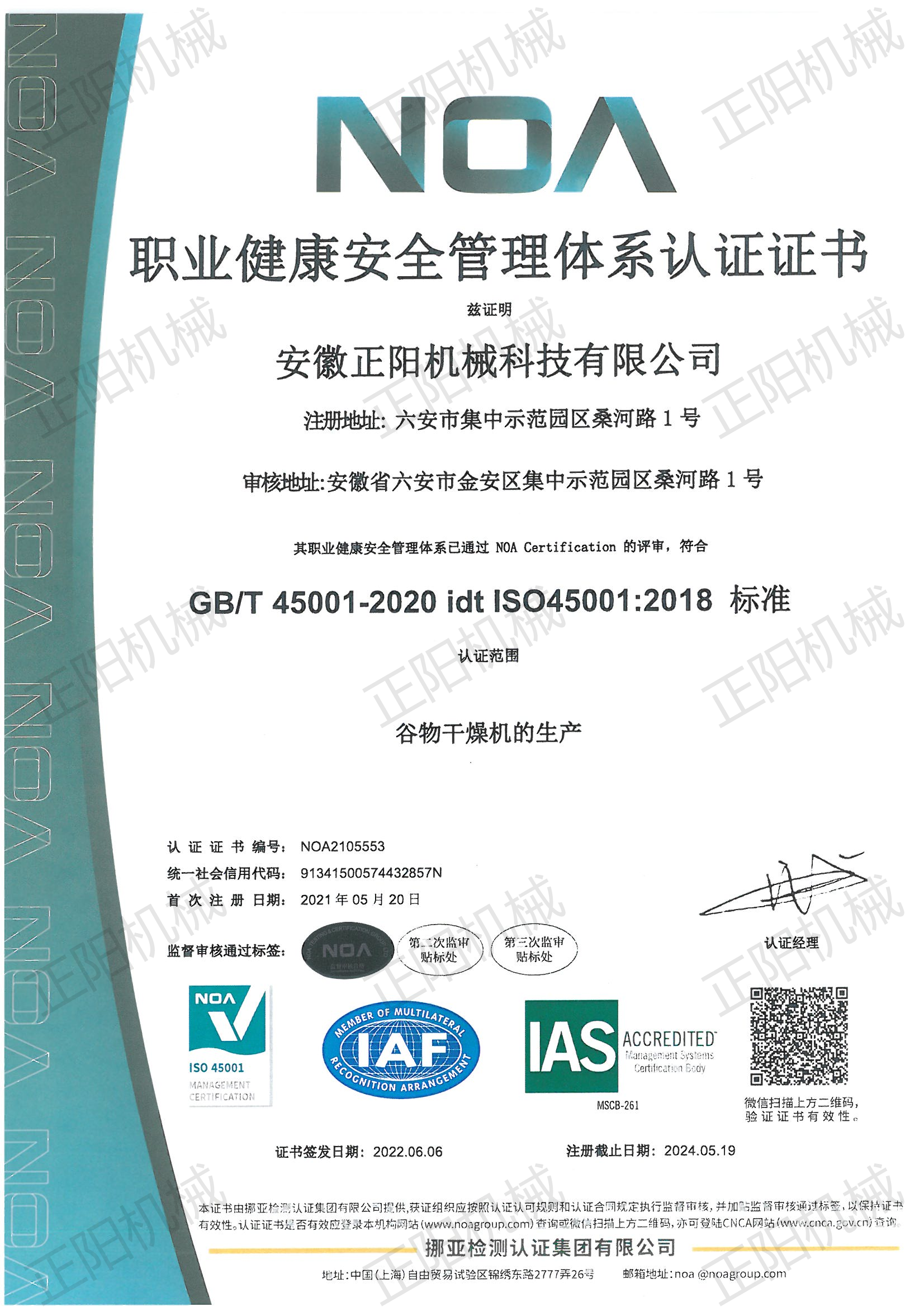 職業(yè)健康安全管理體系認(rèn)證證書(shū)